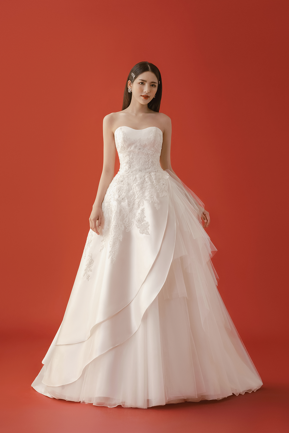 The femininity of sweetheart bell line gown floral lace alive on layers made by couture embroidery