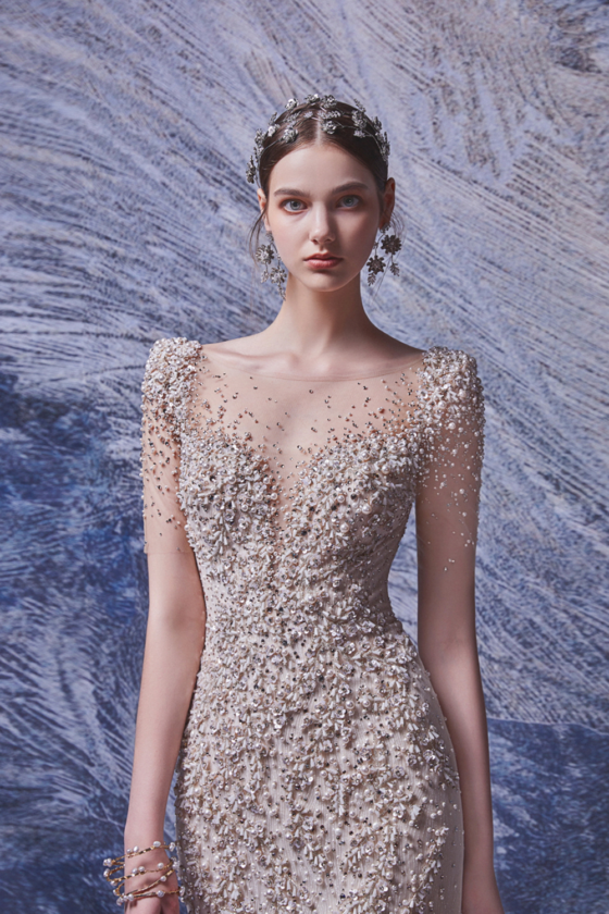The glittering mermaid dress is embroidered overlay the dress with luxury Swarovski crystal hotfix making elegance, alluring