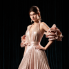 The A-line rose satin gown is an exquisite display of hand-ruffle draping. Big and long bow on back increase exclusion,...