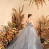 The V-neckline frames the shoulders beautifully, while the open back adds a touch of alluring drama. This gown is perfect for the bride who desires a romantic and unforgettable look on her special day