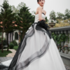 The ‘Black Bloom’ is a captivating princess-line gown that exudes an air of mysterious elegance. A luxurious layer of black tulle adds a touch of drama, while the durable satin skirt provides a comfortable and graceful foundation. This gown is perfect for the bride who desires a unique and unforgettable look on your special day